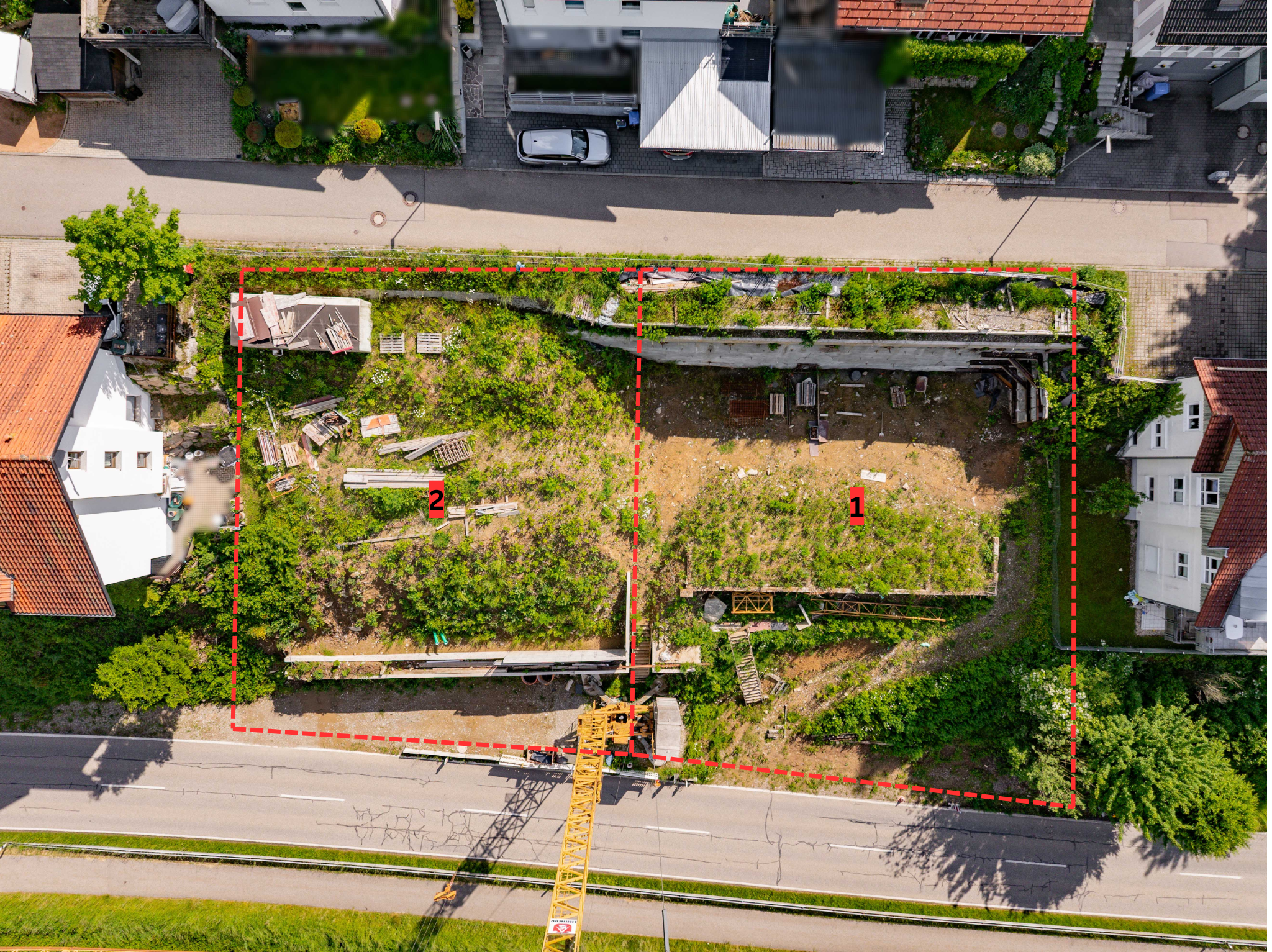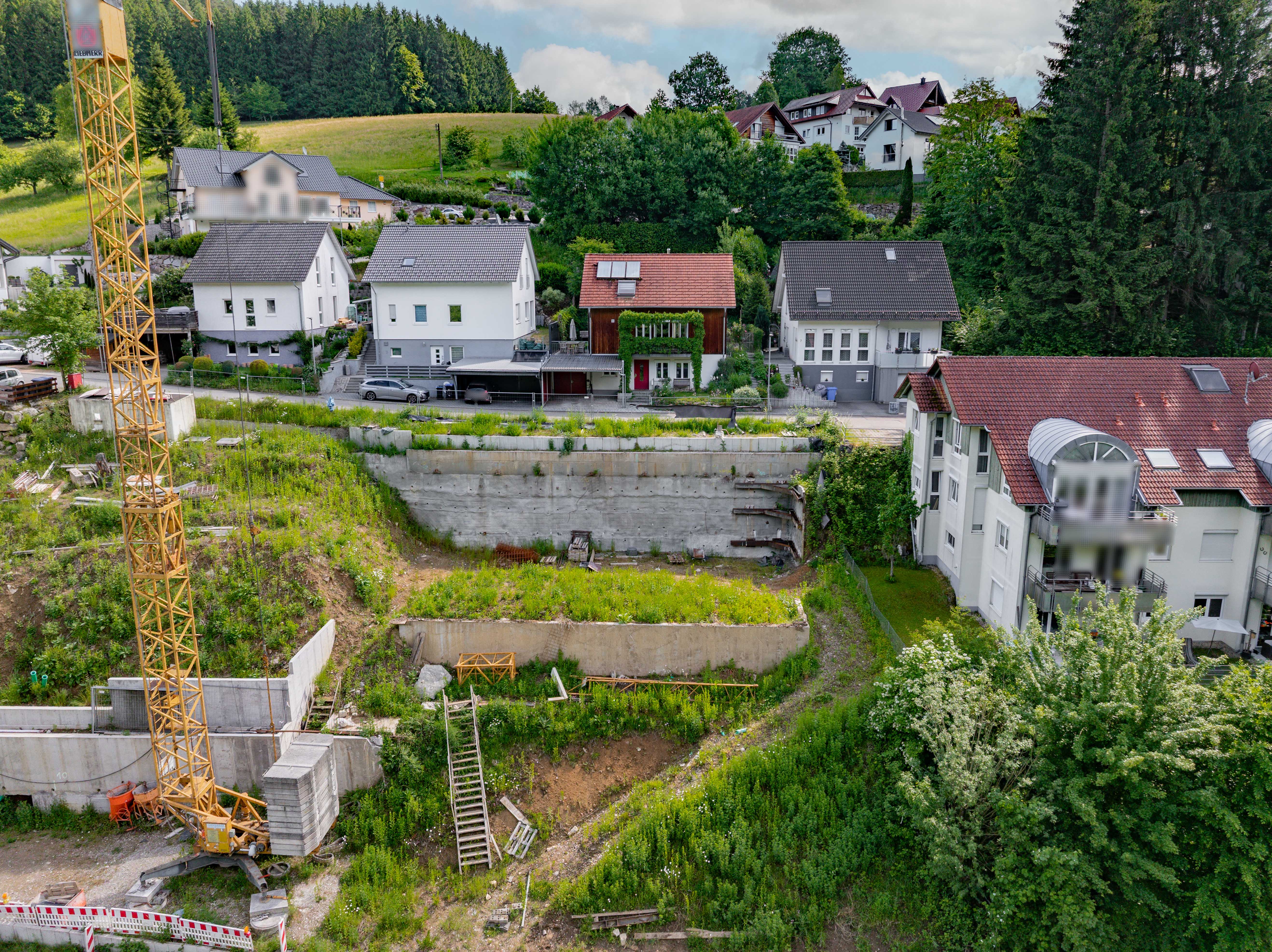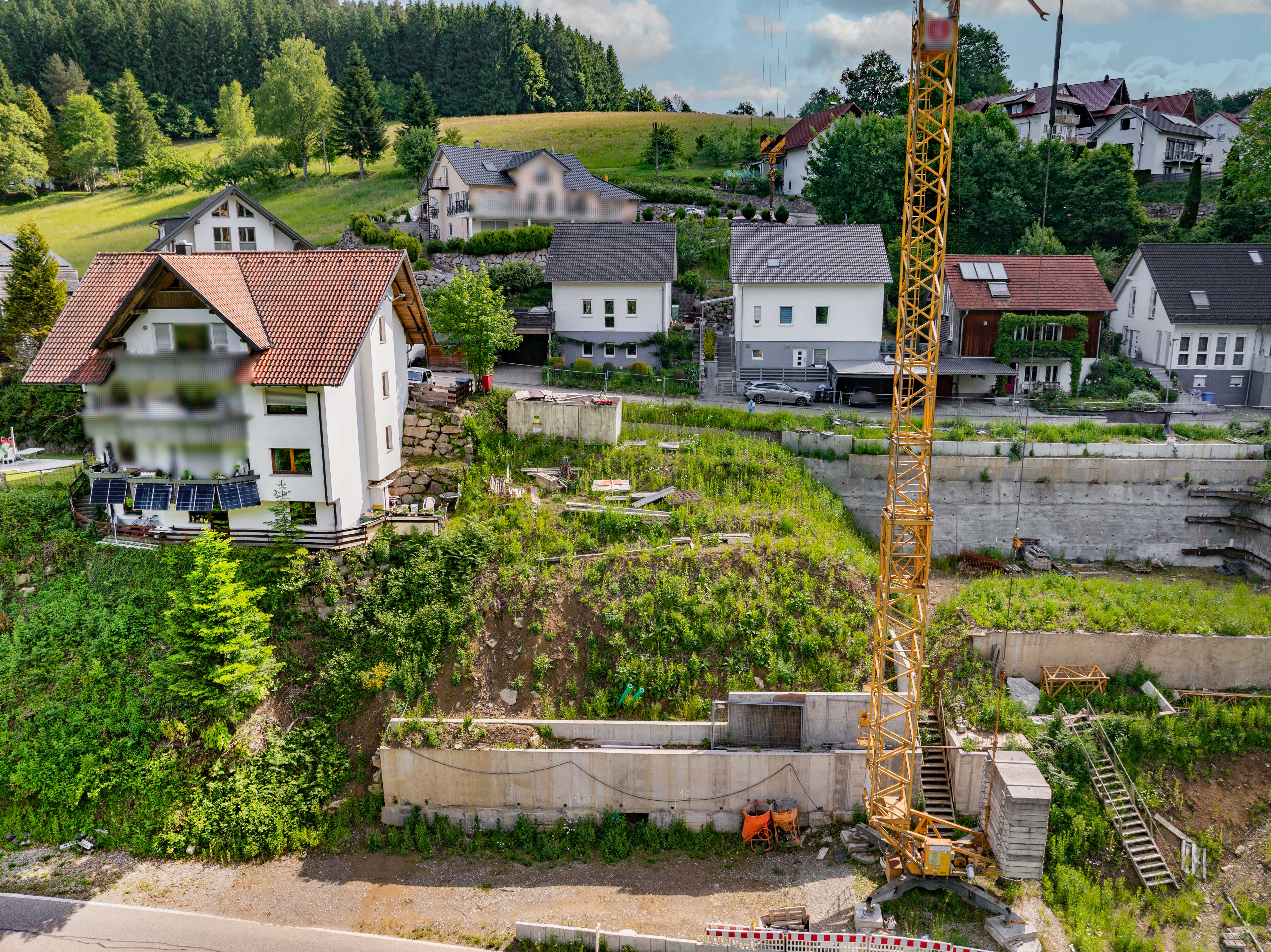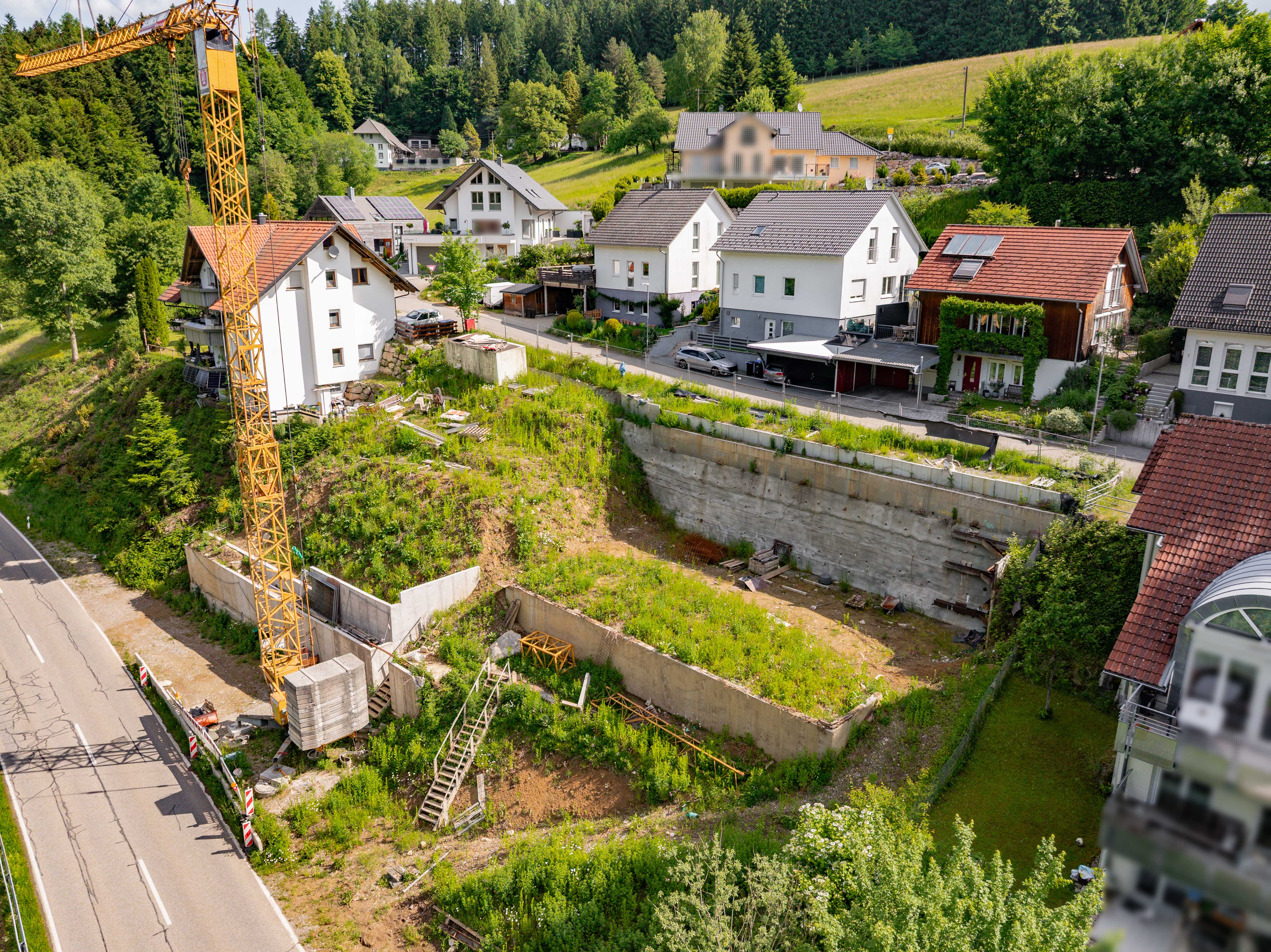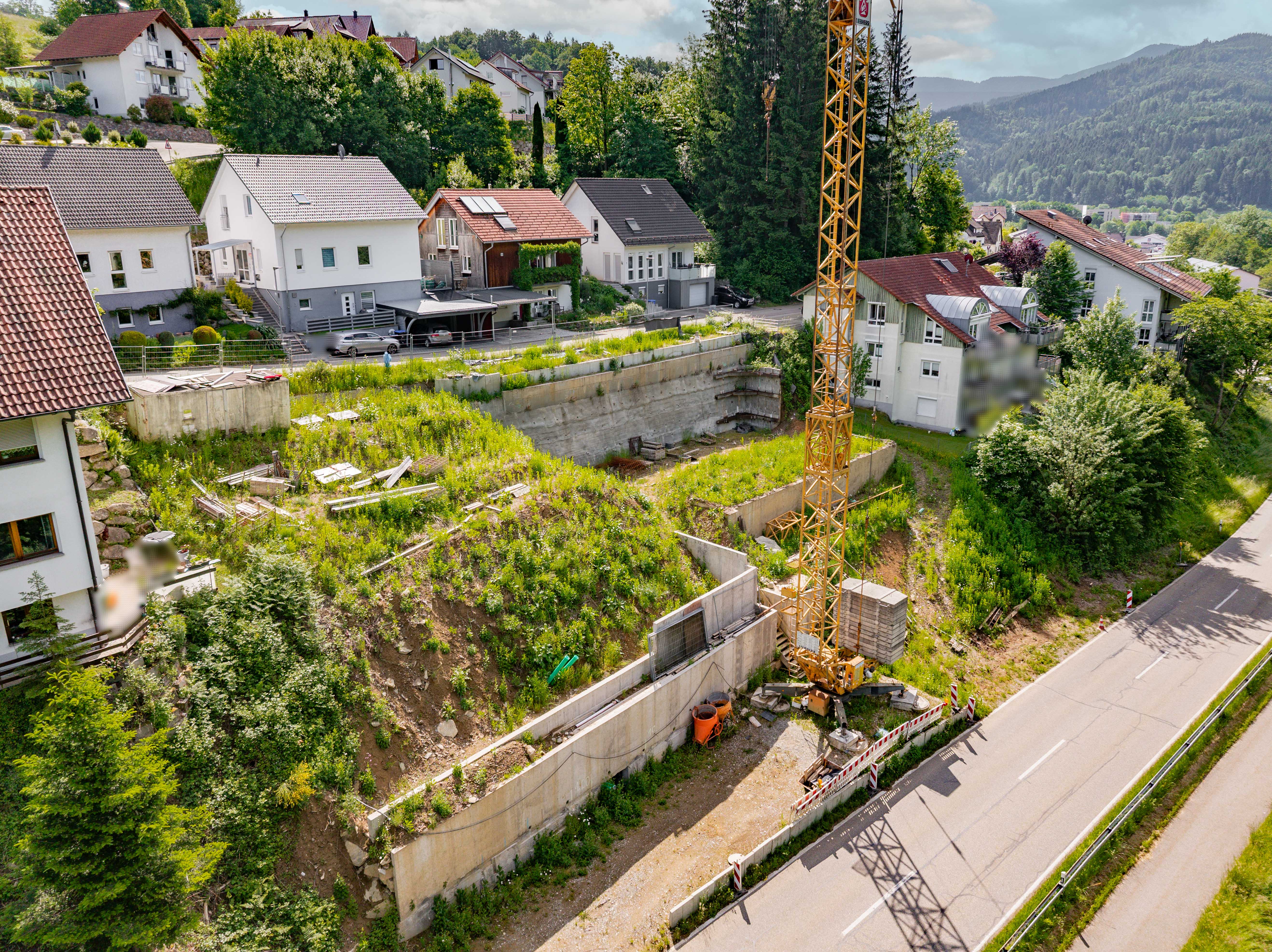 Die beiden Grundstücke sind jeweils mit einem Mehrfamilienhaus mit insgesamt 8 Wohneinheiten und einer geplanten Wohnfläche von ca. 590 m² (1.180 qm Gesamtwohnfläche) projektiert. Für eines der beiden Häuser liegt bereits eine rechtskräftige Baugenehmigung einschließlich Teilbaufreigabe vor. Erste vorbereitende Maßnahmen wurden bereits durchgeführt – darunter die Hangsicherung durch eine Bodenvernagelung.