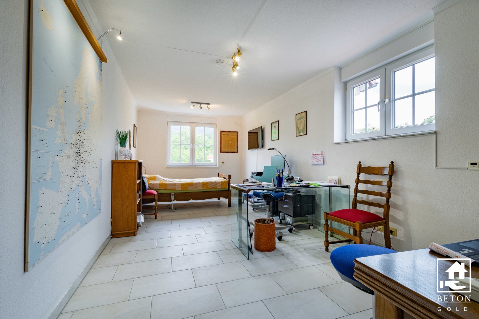 Die insgesamt 6 Zimmer bieten vielfältige Nutzungsmöglichkeiten und ausreichend Platz für individuelle Gestaltungsideen. Ob als Schlafzimmer, Arbeitszimmer oder gemütlicher Rückzugsort – hier finden Sie Raum für Ihre persönlichen Bedürfnisse und Vorstellungen.