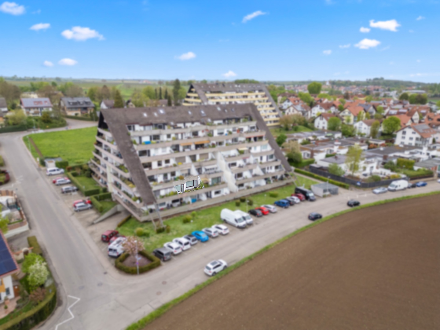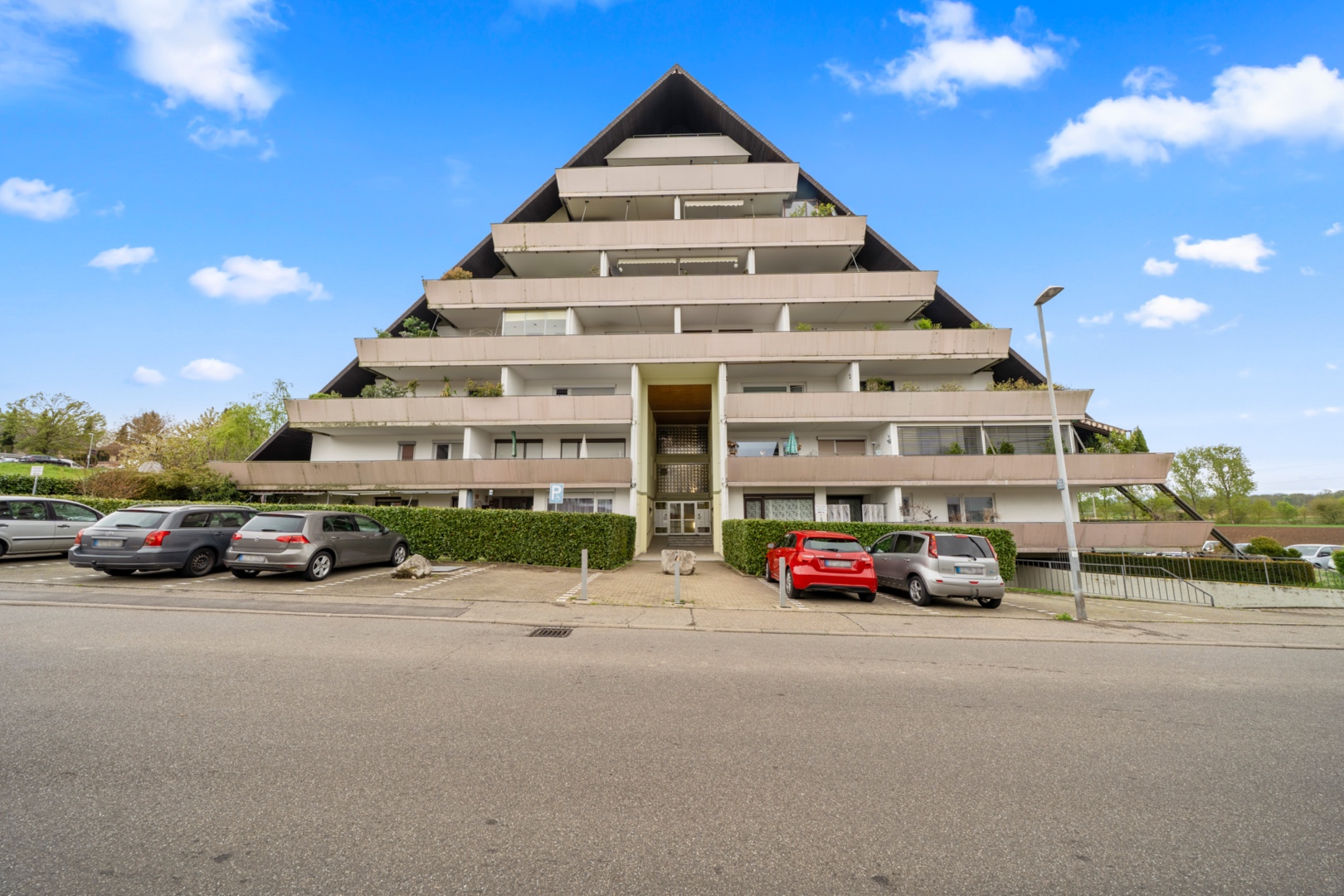 In dieser außergewöhnlichen 2-Zimmerwohnung im legendären Pyramidenhaus von Freiburg-Tiengen erwartet Sie ein Wohnerlebnis der besonderen Art. Auf ca. 64 m² Wohnfläche mit einem beeindruckenden ca. 22 m² großen Balkon genießen Sie ein modernes Zuhause mit besonderem Flair. Die Wohnung liegt im 1. Obergeschoss und überzeugt durch ihren offenen Wohn- und Essbereich, eine vorhandene Einbauküche sowie zwei Zugänge zum großzügigen Balkon mit freiem Blick.